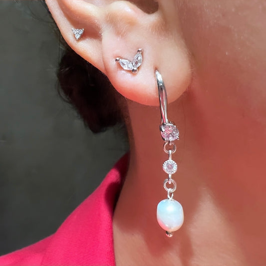 עגיל חוט טיפה לבן-כסף