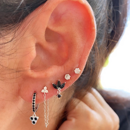 אזל המלאיעגיל לוטוס שחור כסף