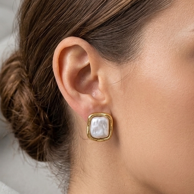 עגילי דפי כאן כדי לגנוב את ההצגה. פנינה ריבועית במראה גולמי וטרנדי שעושה כבוד לקלאסיקה, אבל עם טוויסט עכשווי שאי אפשר להתעלם ממנו.