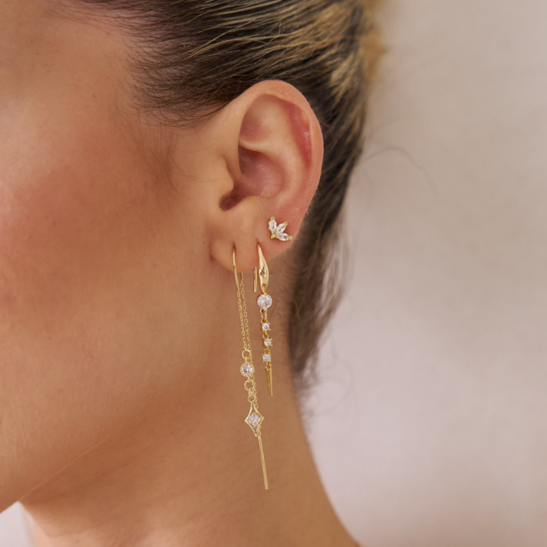 עגיל לוטוס צמוד אוזן קטן אך עם מלא נוכחות משתלב נפלא עם עגילים נוספים למראה גלאם נוצץ ואלגנטי.