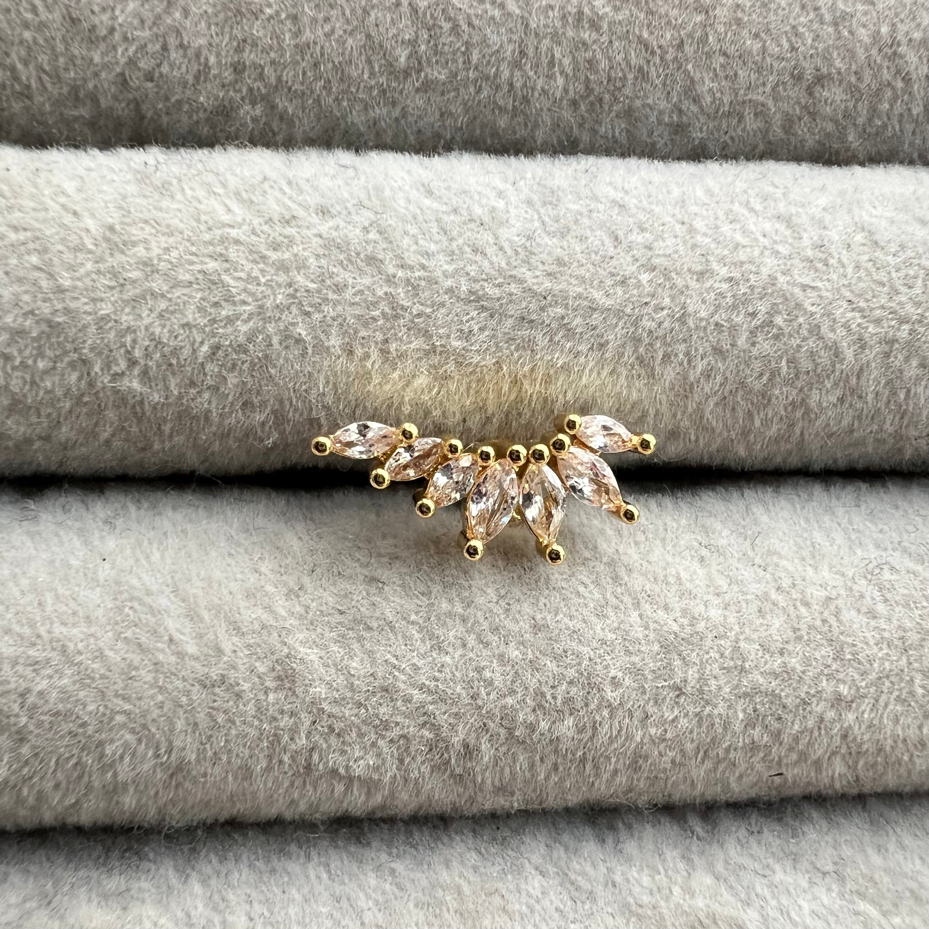 עגיל פרינסס יוקרתי צמוד אוזן משובץ זירקונים לבנים הנותן מראה אלגנטי ועדין. משתלב נפלא עם עגילים נוספים למראה שכבות.