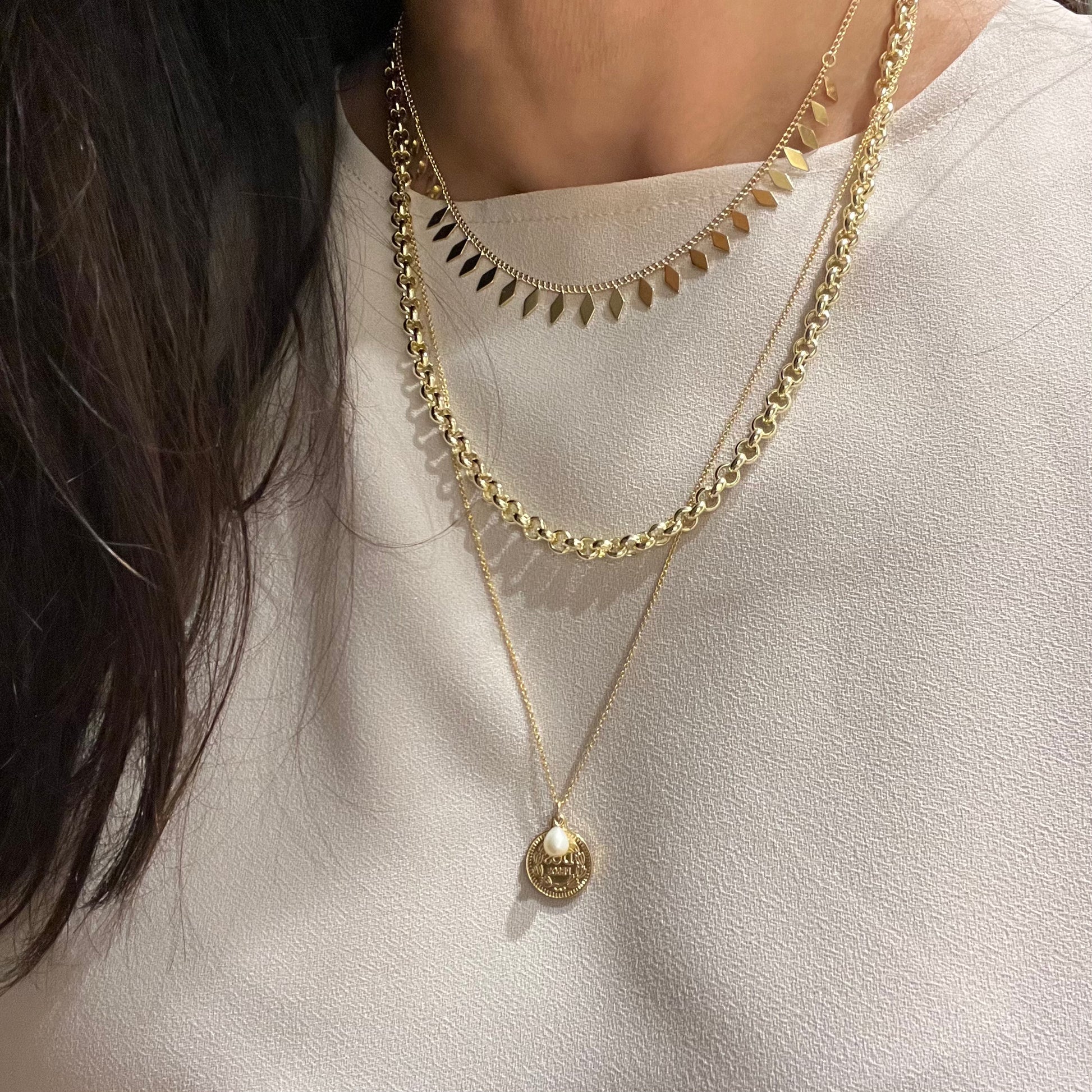 שרשרת ארוכה עם תליון וינטג׳ עגול ומשולב עם פנינת מים מתוקים. עיצוב עדין ומינמליסטי שמשתלבת בצורה מדוייקת עם שרשראות נוספות ליצירת מראה שכבות עדין ומלא בנוכחות