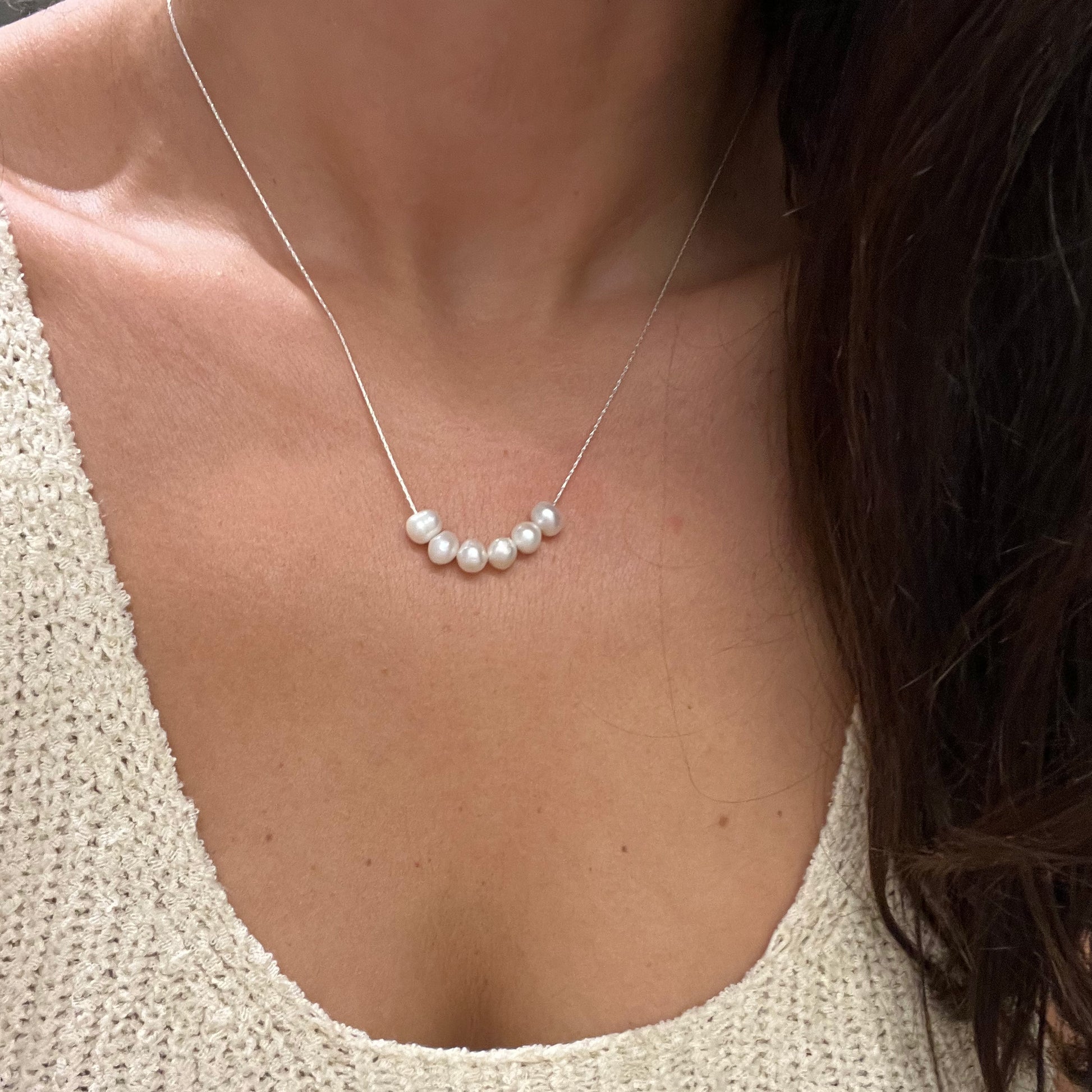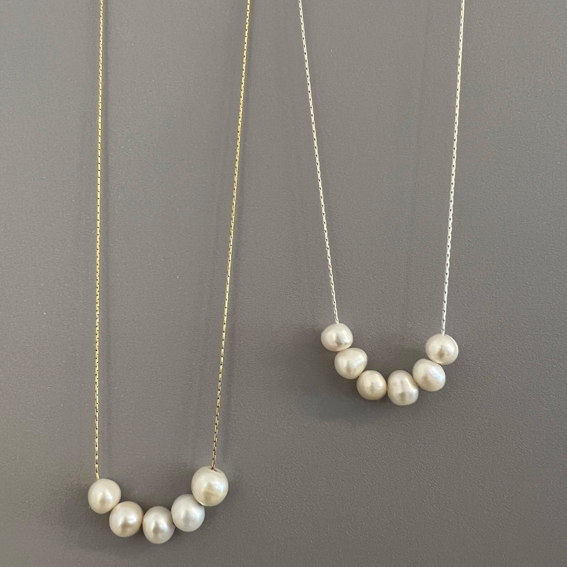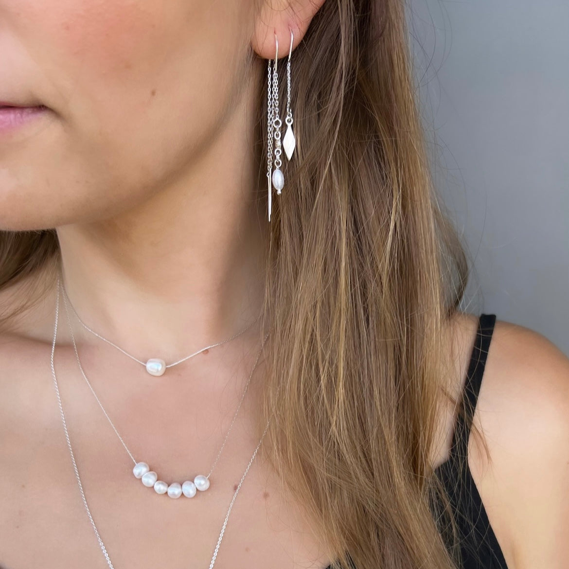 שרשרת כסף דקה ועדינה בשילוב פניני מים מתוקים. עיצוב מינימליסטי וקלאסי שמתאים עם כל שרשרת נוסף שתבחרי למראה שכבות קלאסי ועדין.