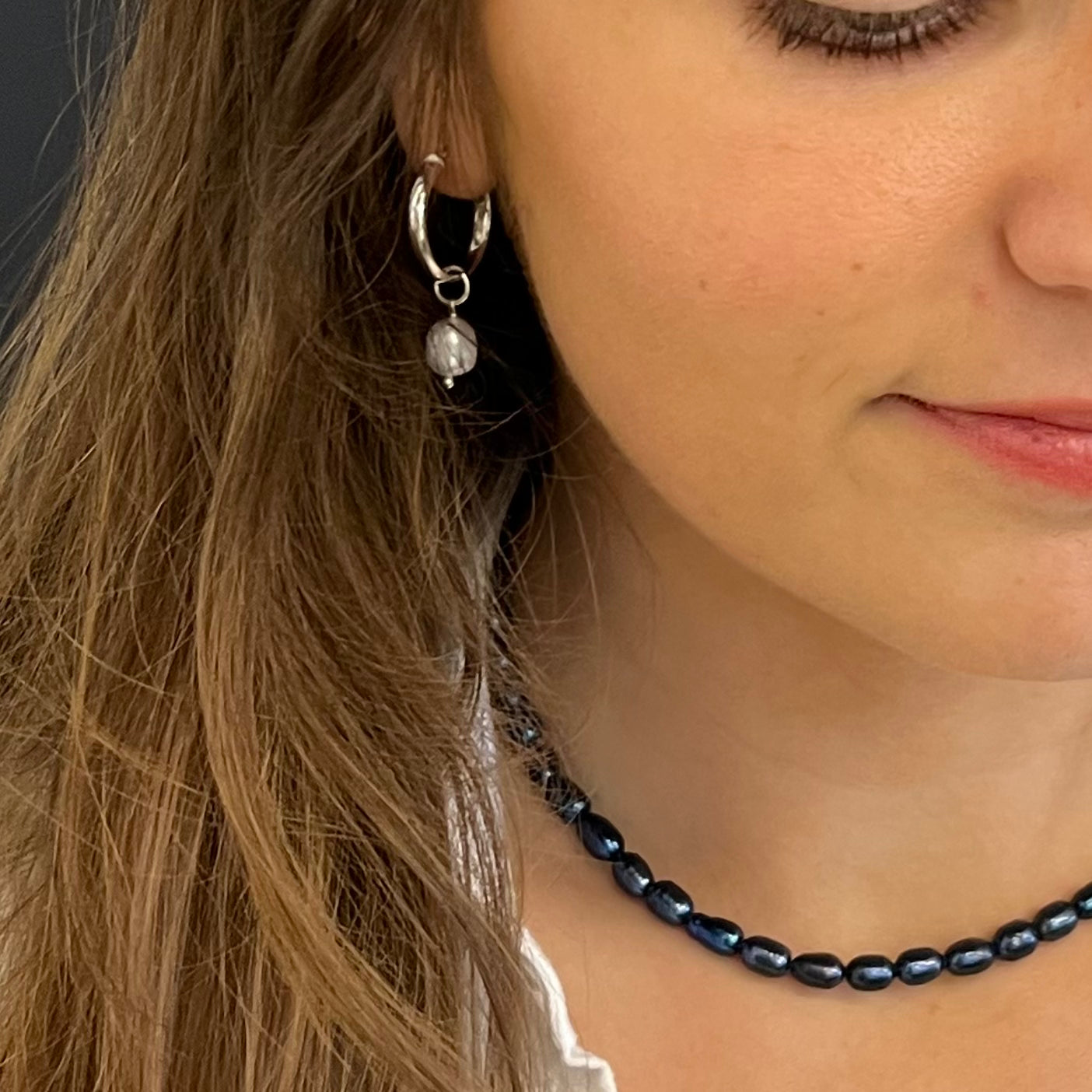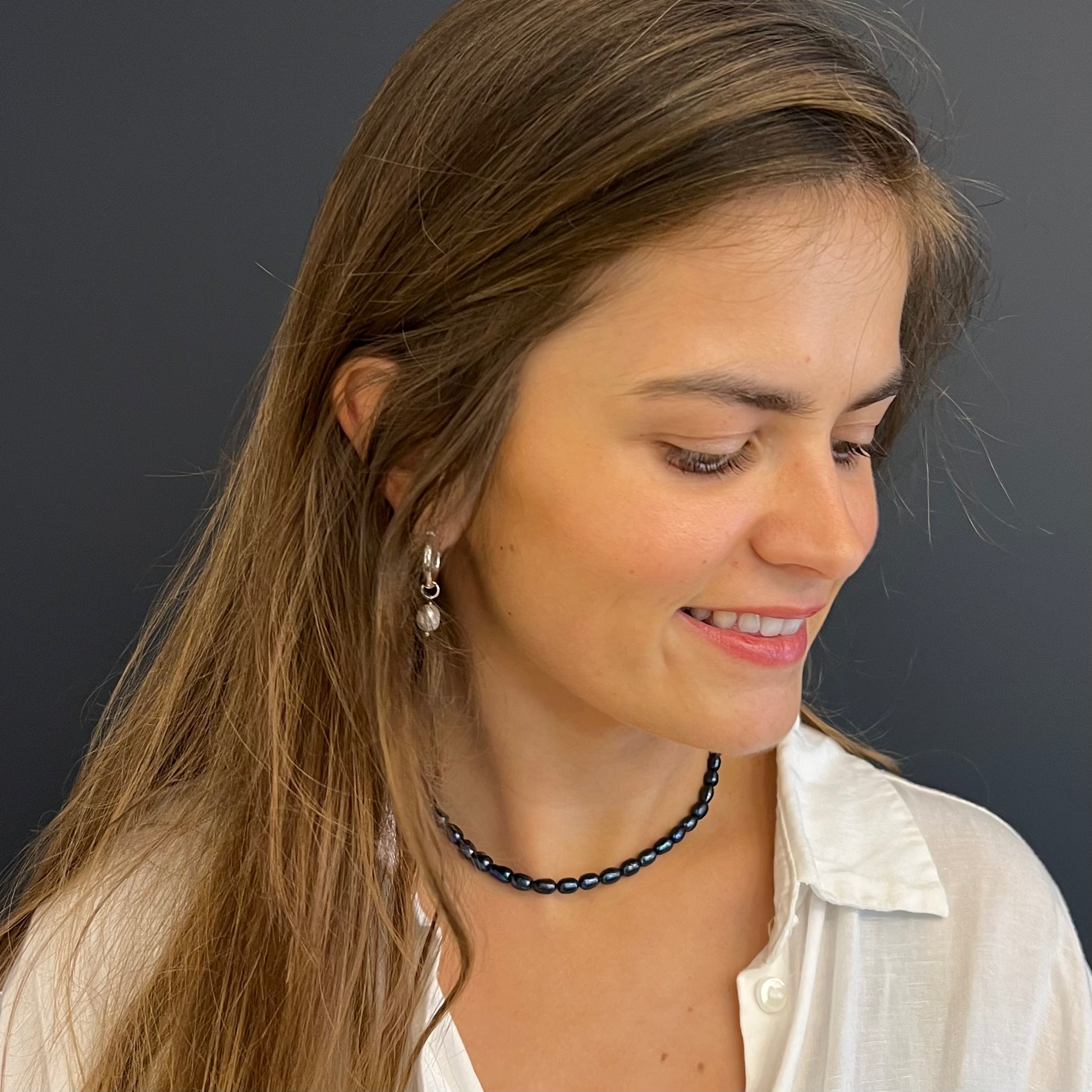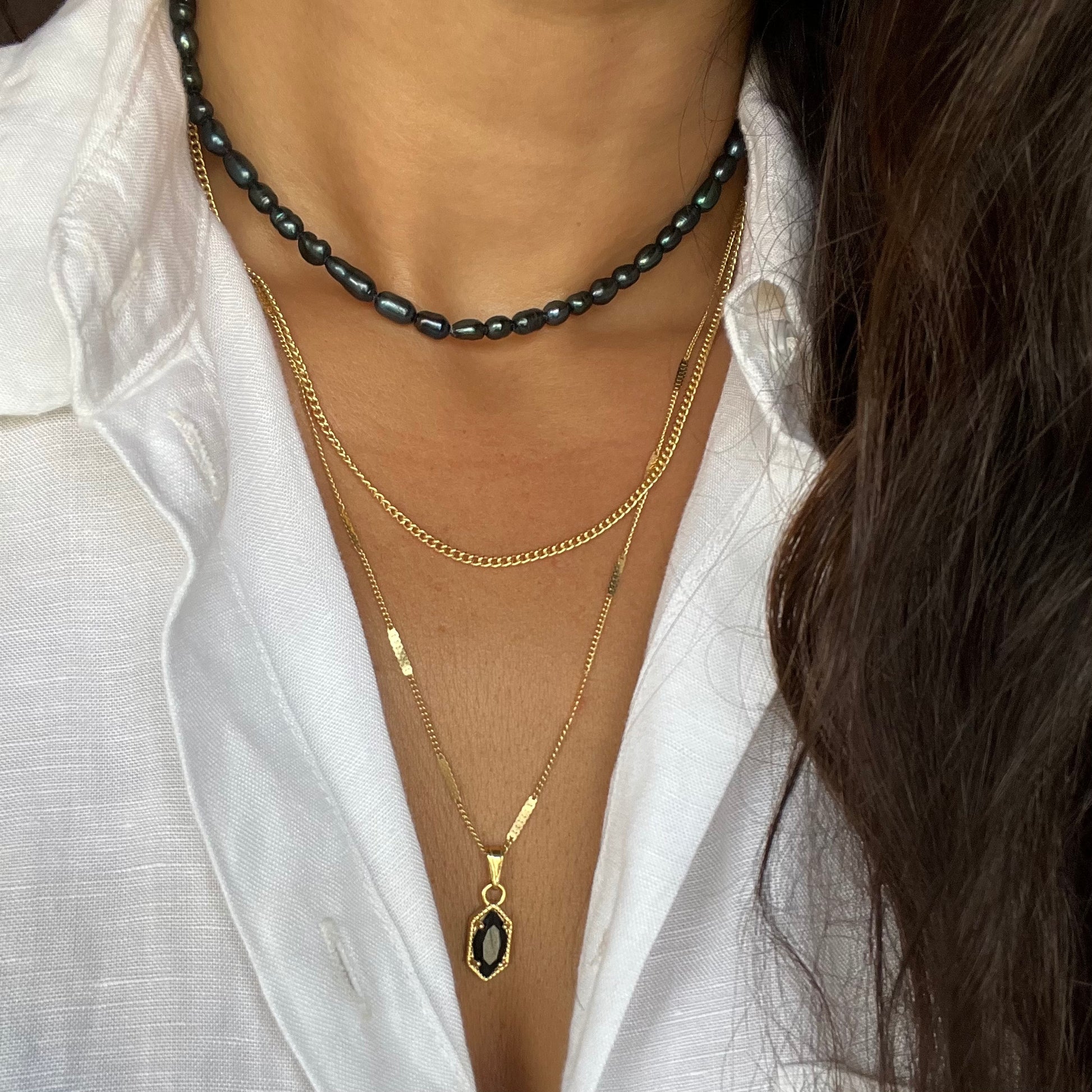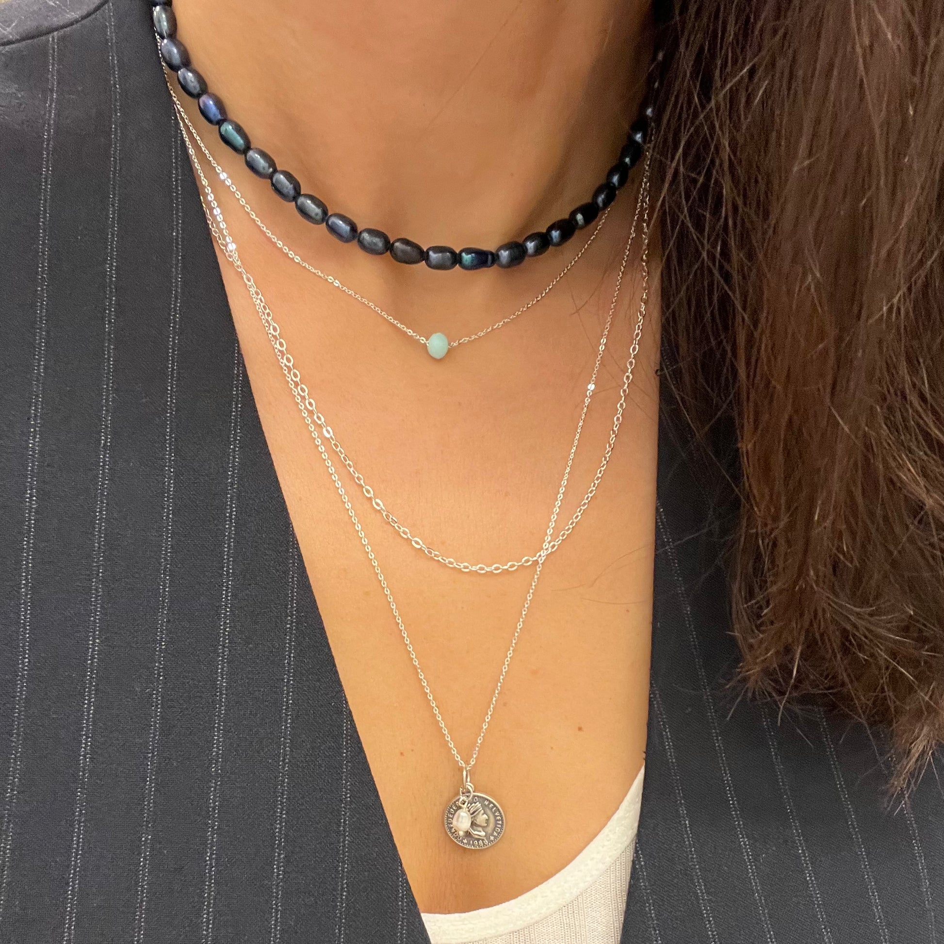 שרשרת דין שזורה פנינים שחורות עם נוכחות רכה ומעודנת למראה קלאסי מדויוק משתלבת נפלאה עם שרשראות נוספות למראה שכבות אלגנטית.