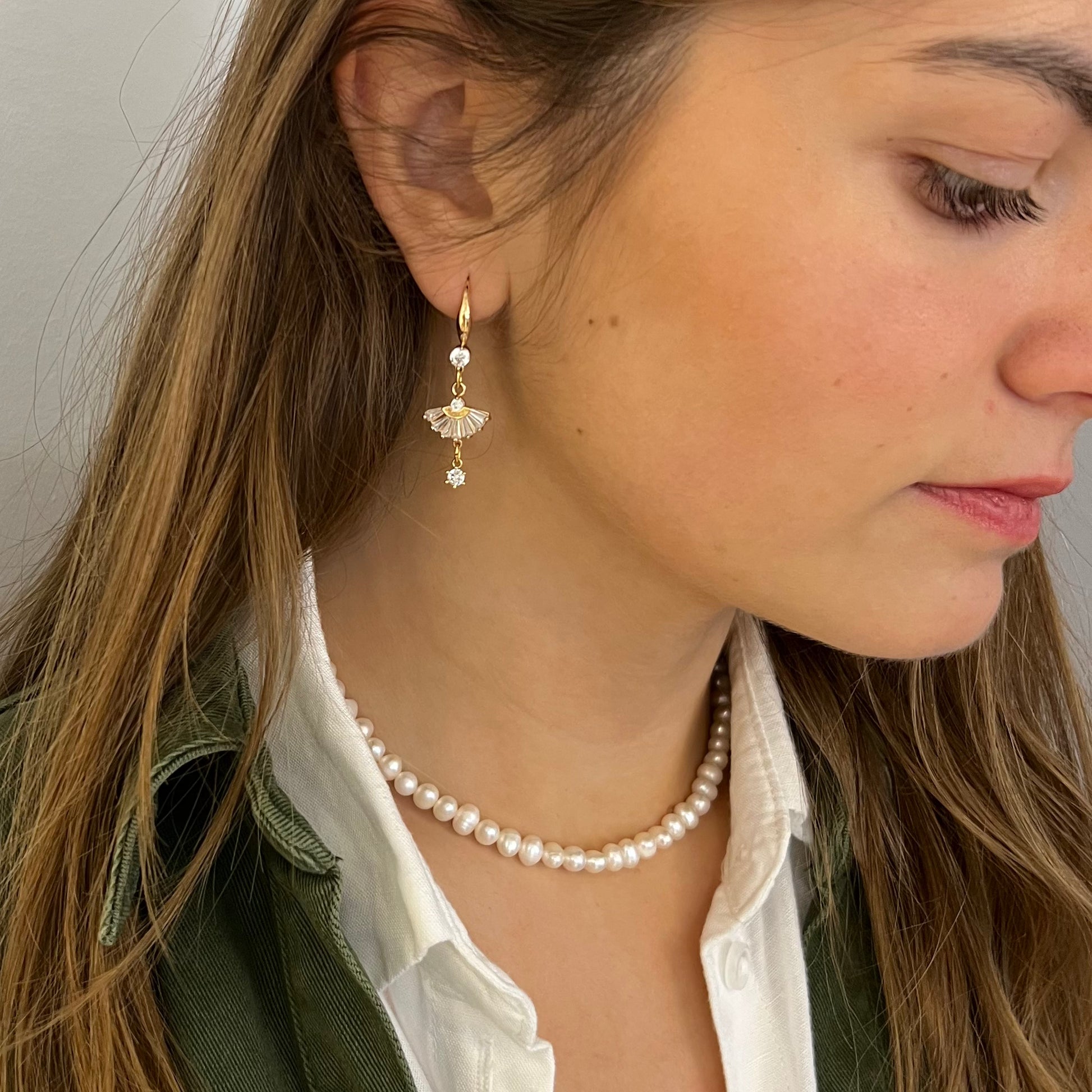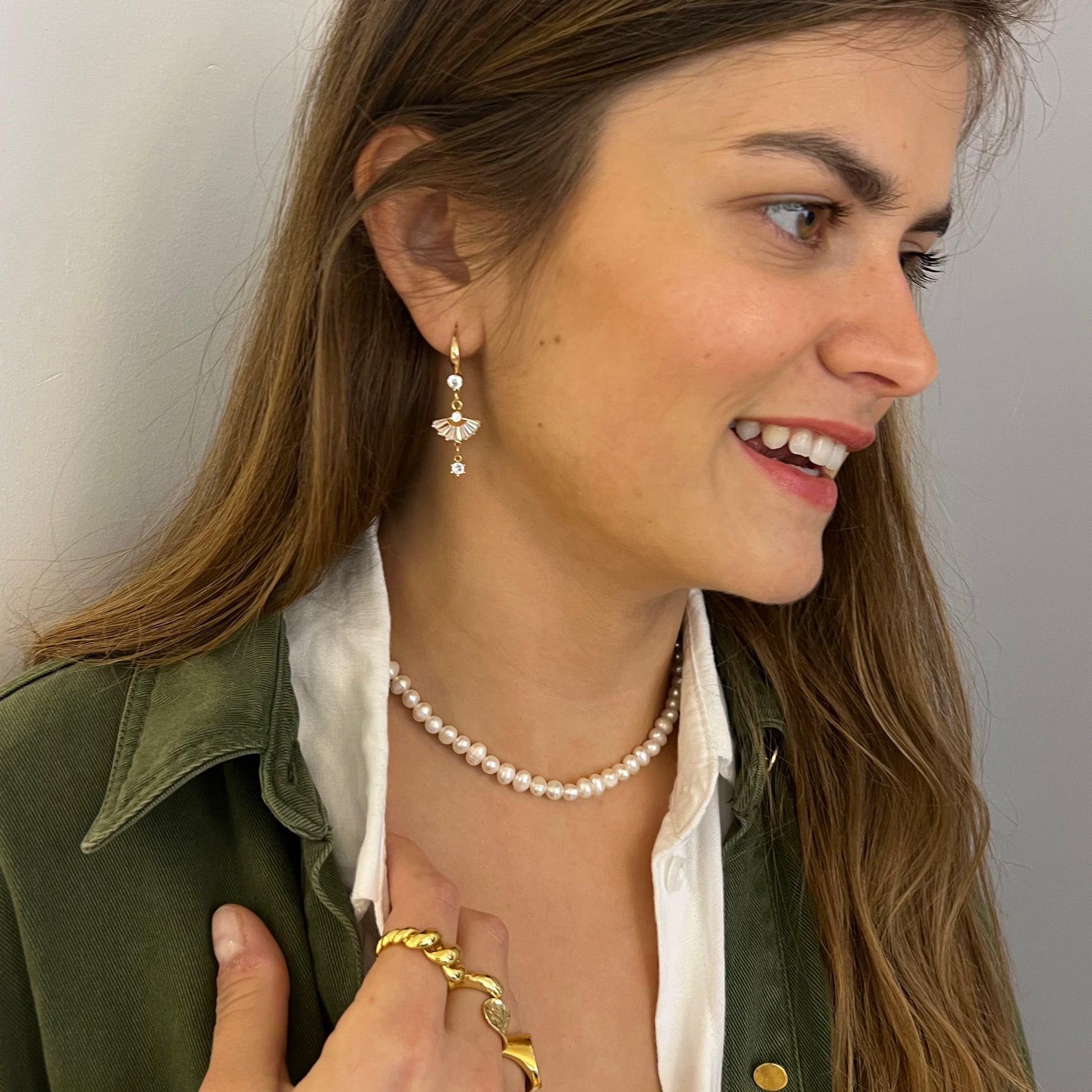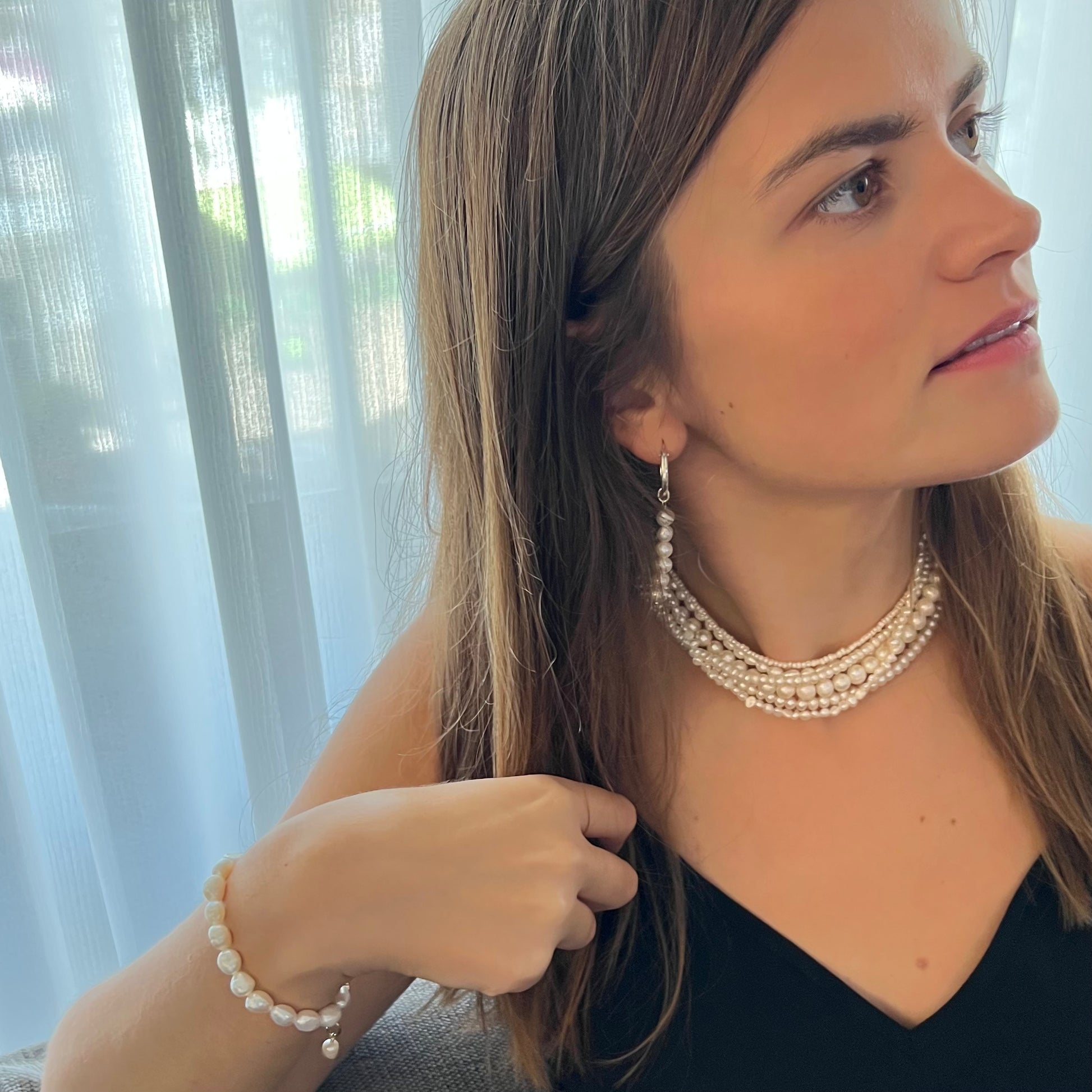 שרשרת אנה שזורה פנינים לבנות בעלות מראה רך קסום ועדין. משתלבת נפלא במראה שכבות נקי ואוורירי.