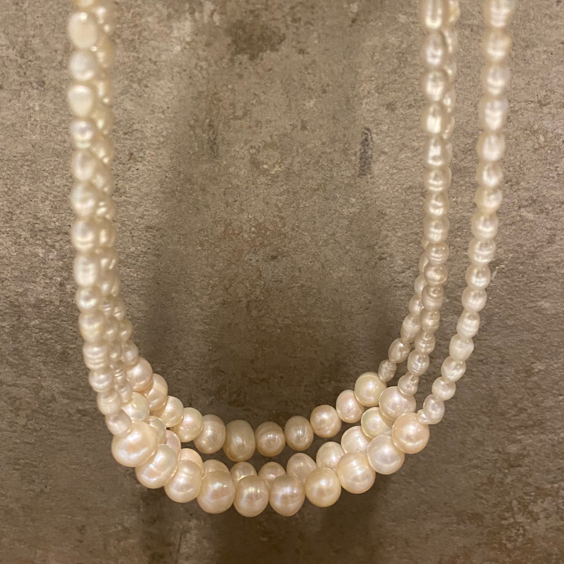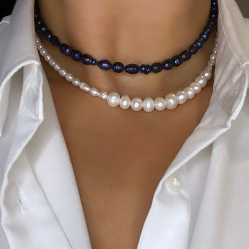 שרשרת איזבל האהובה עליי! שזורה משני סוגי פנינים בגדלים שונים. אני מאוהבת בה. איזבל משתלבת מושלם עם שרשראות נוספות ליצירת מראה גלאם ומלא נוכחות.