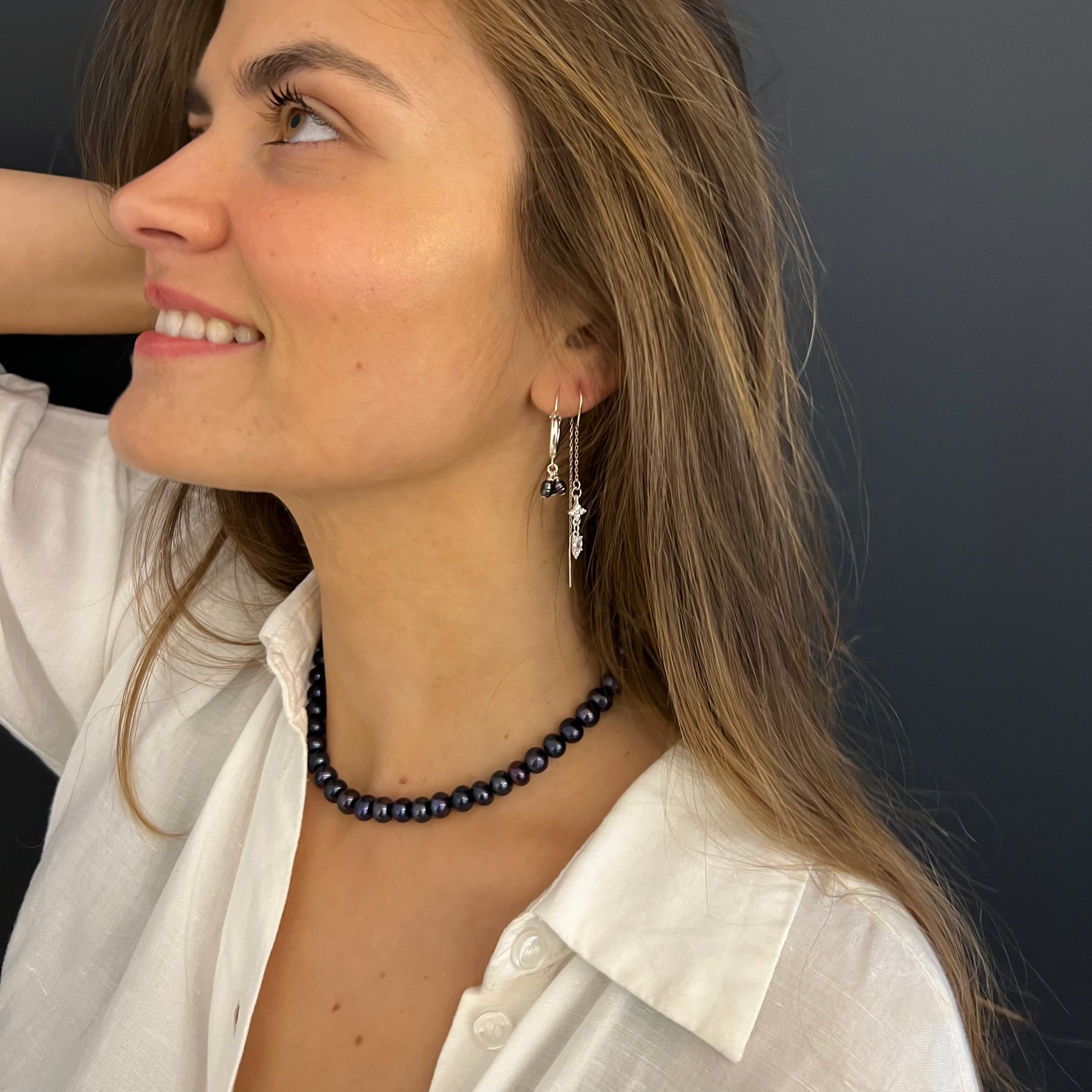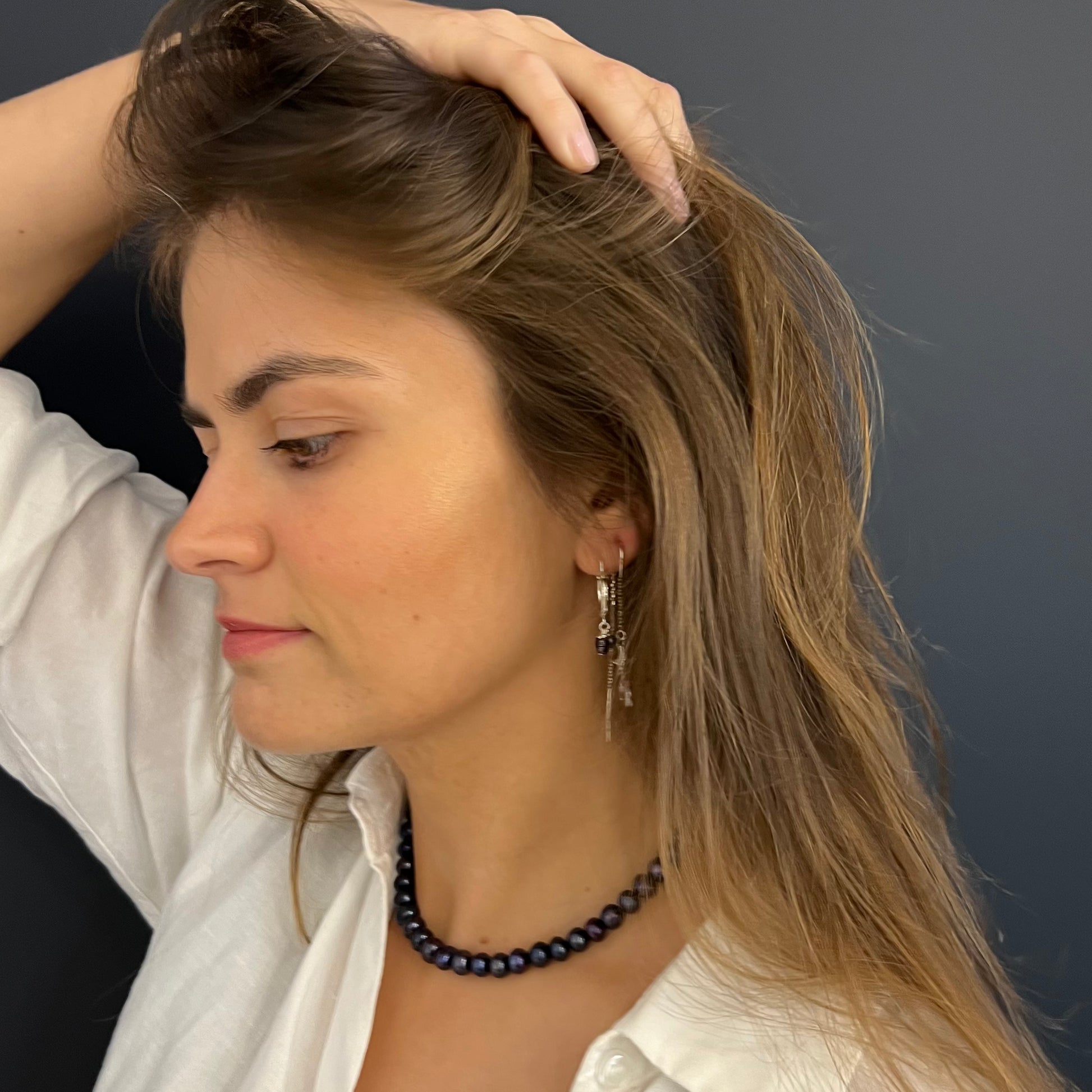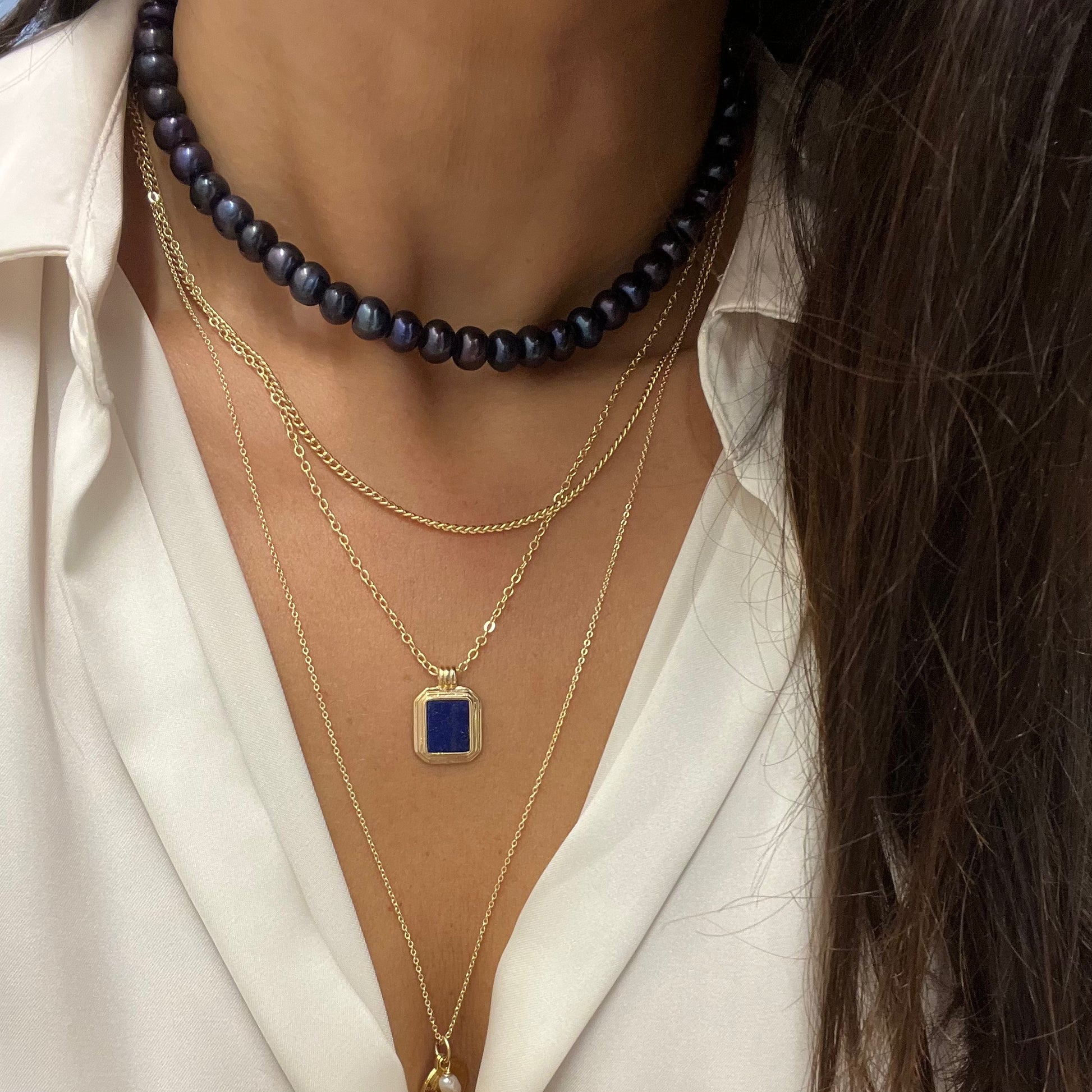 שרשרת קטרינה בלאק שזורה פנינים שחורות עם נוכחות מהפנטת. כשתענדי אותה כל תשומת הלב תהיה אלייך השרשת משתלבת מקסים במראה שכבות אלגנטי ונקי.