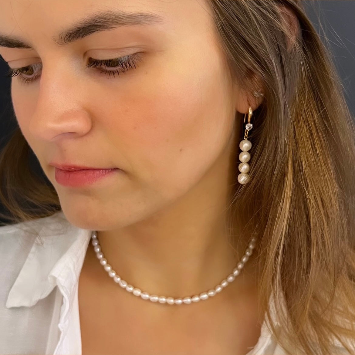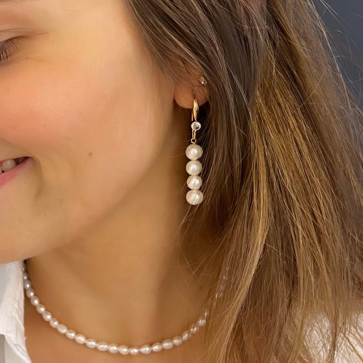 שרשרת אנה שזורה פנינים לבנות וקטנות בעלות מראה רך קסום ועדין. אנה, משתלבת נפלא עם שרשראות נוספות באורכים שונים למראה שכבות נקי ואוורירי.